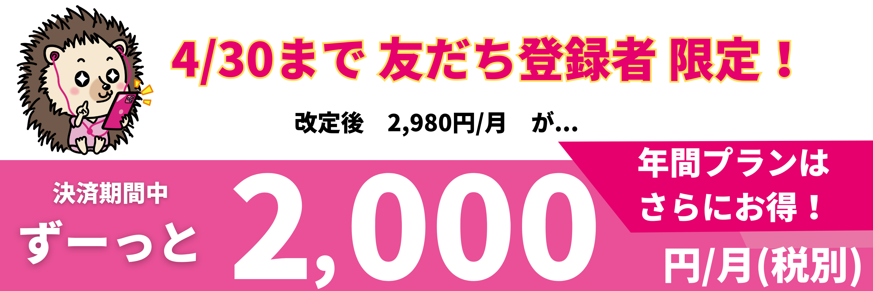 2023年5月1日〜月額2980円(消費税別) または 年額29800円(消費税別)