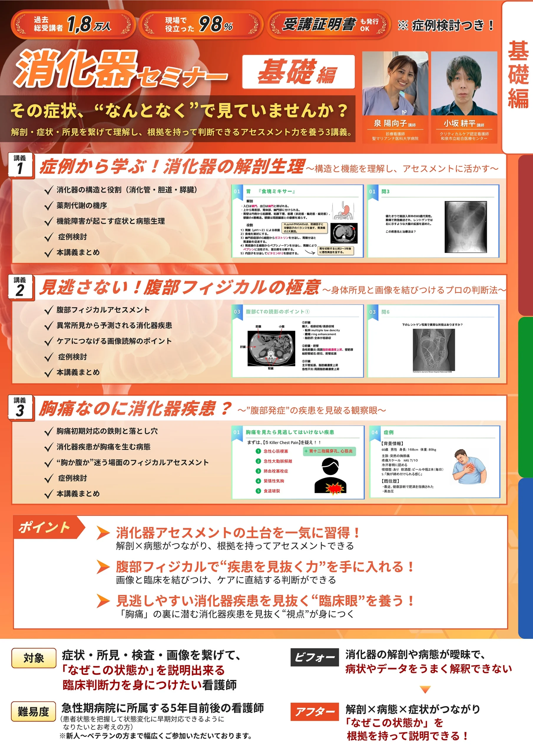 消化器の解剖から病態・治療・看護までを一貫して学び、 アセスメント/報告/看護実践に活かせる動画教材3本のセット
